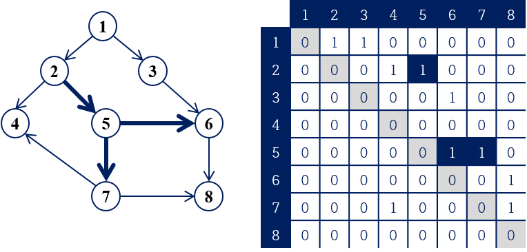 - in-degree : 방향 그래프에서 정점에 들어오는 간선의 수