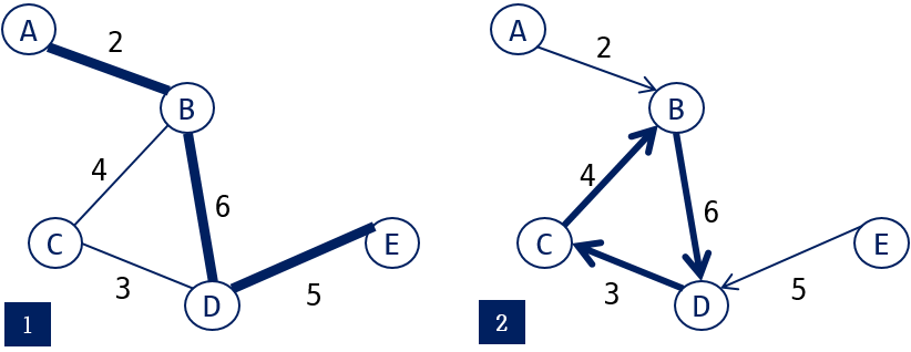 - 가중치(혹은 비용)를 갖는 간선으로 이루어진 그래프
